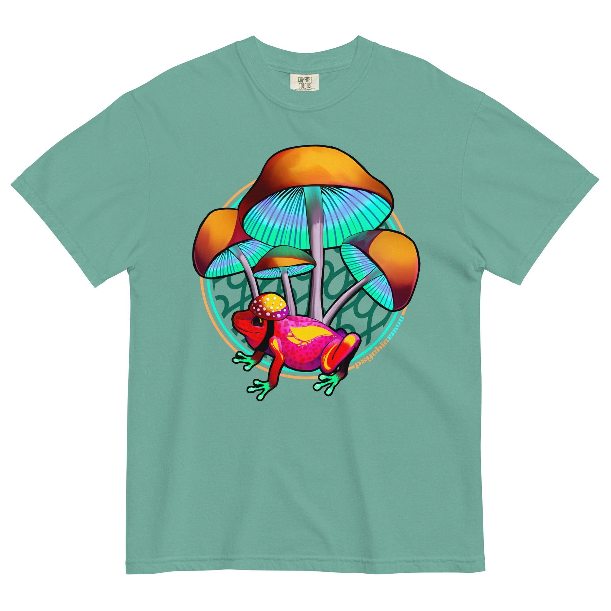 Get ready to leap into a psychedelic dreamscape with this design featuring Silo the Froggo! Bursting with vibrant colors and adorned with mystical mushrooms, this captivating buddy is sure to be a unique addition to any wardrobe!
